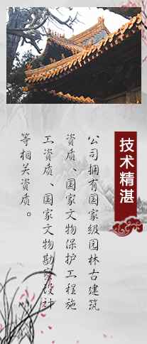 堅持質(zhì)量為先,信譽為重,管理為本,服務(wù)為誠的理念。本著對社會、對建設(shè)單位負責(zé)的原則,將工程質(zhì)量、安全生產(chǎn)放在工作的重要位置。我們堅持發(fā)展古建藝術(shù),弘揚民族文化,作為企業(yè)的經(jīng)營管理理念。曲阜古建筑義德古建始終秉承“科學(xué)管理,創(chuàng)精品工程,打造古建筑行業(yè)標準”的方針,追求更高質(zhì)量,為文物保護、傳統(tǒng)建筑事業(yè)做出貢獻。